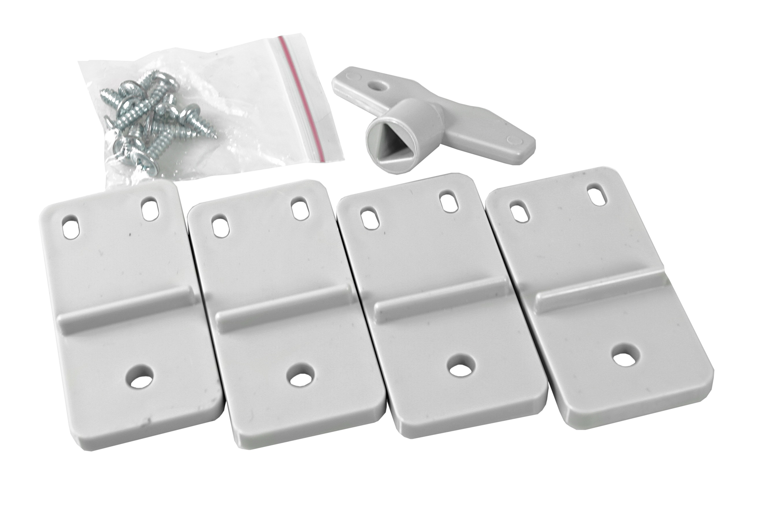 - 4 uchwyty z tworzywa do mocowania szafy oraz wkręty nierdzewne do ich przykręcania.